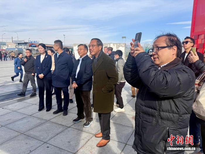图中连接通道的红、蓝打卡点一直延伸到脚下。一侧是中国的“鼎”步道,另一侧是哈萨克斯坦展翅的青铜鹰雕像。当外国驻港领事使团和商务代表团成员进驻这里时,手机摄像头捕捉到的不仅是“一步跨越两国”的新奇场景,也捕捉到了霍尔果斯千百年来的商业基因。 14日,他们走进丝绸之路节点城市,探寻这座港口枢纽的新面貌。