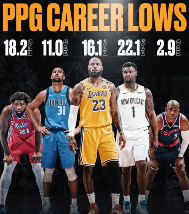 文字|编辑:老勘勘秋 |老看看球 自NBA新赛季开始以来,联盟众多球星的表现都令人震惊。比如湖人队的落选秀里维斯,一步步在本赛季再次完成进化,打出了全明星级别的数据。队内有东契奇和詹姆斯两大超巨,湖人队今年能选到三位全明星吗?火箭队的沉敬也增加了得分。进攻端和防守端都一直是球队的基石。在杜兰特、阿门等球星的支持下,他已经成为本赛季争夺总冠军的最大热门之一。 76人队的马克西也取得了明显的进步,开始逐渐取代恩比德,成为球队的老大。上赛季球队管理层斥巨资打造的“三巨头”阵容,简直是联盟最大的笑话!当众多球星在新时代大展身手的时候,就连老将詹姆斯、库里、哈登、杜兰特等也大放异彩。何然而,一些曾经在联盟大放异彩的巨星却陷入了挣扎,很快就从巅峰跌落。他们甚至已经到了坏球队不想要他们的地步。一代传奇终于落下帷幕。没有人会在乎两位状元领衔的五位巨星! 01 科怀·伦纳德:一位饱受伤病困扰的超级巨星。说到本赛季联盟最大的笑话,大家都能想到一支球队——洛杉矶快船队。从伦纳德的阴阳合同,到比尔的赛季还款,再到冒着全世界不认可的风险放走球队功臣克里斯·保罗,这位MGA大将一直内讧,失去连胜,排名西部垫底。这场“数十亿美元的战斗”是否已经彻底腐烂?作为这组巨星,伦纳德被直接推到了舆论的风口浪尖。这位两届总决赛MVP一度被认为是继詹姆斯之后联盟最全面的前锋球员,但他的右膝前十字韧带撕裂e改变了一切。 2021年季后赛受伤,伦纳德三个赛季只打了95场比赛,出勤率不足40%。更令人担忧的是,即使他重返赛场,他之前无法获得的攻防统治力也大打折扣。过去两个赛季,在没有他的情况下,快船队的胜率实际上有所提高,说明他已经成为球队的“拖累”。最重要的是,即便是快船想要放弃伦纳德,他在交易市场上的价值也大幅下降。 ESPN的报道显示,伦纳德的价值被认为是负面的,几乎没有球队愿意交易他。原因是阴阳合同丑闻和漫长的伤病史对其他球队没有吸引力。快船队很难找到合适的交易伙伴。传说中的超巨完结了吗? 02 保罗·乔治:伤病一直是他职业生涯末期的一大主题。乔治的轨迹是惊人的与伦纳德非常相似。这位八次入选全明星的球员曾在印第安纳步行者队与詹姆斯领衔的热火队正面交锋,而在转会到俄克拉荷马城雷霆队后又打出了MVP级别的表现。然而加盟快船后他就开始遭遇伤病困扰。现在在费城 76 人队,缺席成为常态,伤病成为他职业生涯末期的一大主题。上赛季,乔治只为76人队打了41场常规赛,场均只有10分。 16.2分、5.3篮板、4.3助攻,均创近十年新低,球队战绩东部垫底。本赛季至今,乔治只打了8场比赛,场均只有14.1分,为职业生涯第三低。防守端,乔治已经不再是那个能够锁住对手箭矢的顶级侧翼防守者了。最关键的是乔治与恩比德的四年超过2.12亿美元的合同,这几乎占了占球队总工资的55%,这几乎是NBA历史上最糟糕的合同。几乎可以肯定没有球队愿意接受乔治,而76人队已经陷入了困境。 03 JA Morant:Boy Morant 才华横溢的 NBA 职业生涯的崩溃确实令人失望。 2022年,他带领灰熊队取得了56胜26负的队史最佳战绩,场均贡献27.4分、6.7次助攻,投篮命中率为47.4%。年仅23岁的他已经是联盟最炙手可热的年轻超级巨星之一。然而,一系列枪支事件和球场上的不当行为导致他被禁赛33场。回归之后,莫兰特明显失去了往日的实力。他的持球爆发力减弱,场均得分和进攻效率严重下降。更重要的是,他对比赛的控制力和指挥力大大降低。在他悬念之前,灰熊队也已经从西部第二跌落面对今天的边缘季后赛球队的愿景,管理层开始考虑在“后莫兰特时代”建立球队的计划。但对于这样一个“问题天才少年”,即使球队状态不佳,联盟中也几乎没有球员愿意伸出橄榄枝。 04 前两名选秀权:本·西蒙斯和锡安·威廉姆森。本·西蒙斯的跌倒轨迹更加出人意料。 2019-20赛季,本西蒙斯场均贡献16.4分、7.8个篮板和8.0次助攻。入选全明星,进入全防守第一阵容,让大家对这位能攻防结合的年轻巨星充满期待。然而,与费城76人队的磨合、心理健康问题以及强硬的投篮缺陷等一系列问题导致他的状态急剧下滑。被送到篮网后,他直接从首发巨星变成了替补边缘球员。更令人惊讶的是,这位前1号秀在贸易市场上几乎不为人所知。尽管合同即将到期,他也承诺免费踢球,但仍然没有比赛。一位不愿透露姓名的NBA高管直言:“我们也不打算用底薪合同签下他,因为他占据了阵容却无法做出扎实的贡献。”锡安的情况是伤病和自律问题的混合体。 2020-21赛季,他场均得到27.0分、7.2个篮板,投篮命中率为61.1%。他被认为是继詹姆斯之后联盟的另一位未来面孔。然而,持续的脚伤和体重管理问题让他的缺席成为一个笑话。四个赛季,锡安只打了114场比赛,缺席了惊人的60%的比赛。当他健康的时候,他仍然是一个不错的得分手,但防守端的松懈和外线能力缺乏提高让他的上限显得比预期要高。鹈鹕队开始围绕几位新星进行重建,锡安不再出现在球队未来的名单上河然而,自从球队将锡安束之高阁后,就没有人真正关心它了,这实在是令人难过。
