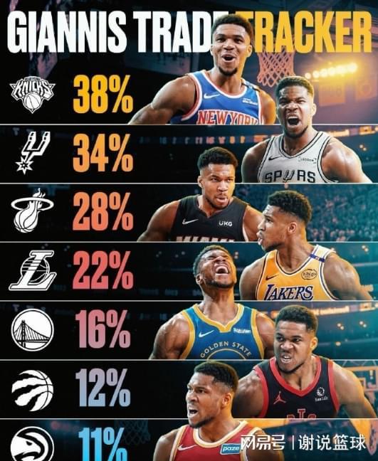 与过去相比,现在的球员想要永远留在一支球队似乎更加困难。尤其是东契奇被送到湖人队之后,只能说有时候忠诚在商业联盟中真的一文不值。字母哥似乎正在考虑在赛季结束后离开雄鹿队。如果扬尼斯·阿德托昆博真的扭转了他的职业生涯,那么他下家的可能性已经被释放。尼克斯队领跑榜单,湖人队和勇士队均进入前五。马刺可能是头号搅局者。他们仅次于尼克斯队,尼克斯队有34%的机会成为字母哥的第二目的地。早在今年夏天,就有字母哥与尼克斯的传闻,但由于筹码差异巨大,双方并没有进行深度谈判。确实,尼克斯目前只有一个首轮选秀权,而雄鹿交易了阿德托昆博,肯定会寻求重建,而他们需要什么是选秀权。虽然尼克斯队有很多优秀的球员,但如果给字母哥轮换太多,球队的整体实力可能不会提升。因此,尼克斯真正的优势恐怕只有在纽约,更容易说服字母哥长期留下。热火队、湖人队和勇士队都有引进巨星的成功案例,因此排在3-5位。 OK组合分崩离析后,热火成功交易来了奥尼尔,奥尼尔也帮助热火拿到了队史首个总冠军,更何况在2010年聘请了詹姆斯和波什与韦德搭档,组成了豪华三巨头。湖人队有詹姆斯和东契奇,但前者显然已接近退役。紫金军团需要字母哥焕然一新,与东契奇联手。显然联盟也希望看到这一点。相比湖人队,勇士队没有年轻球星。库里和巴特勒都已进入职业生涯的末期。如果他们得到字母哥UNMPO除了提升现有实力外,还将拥有未来的核心。马刺队虽然是一支小城市球队,但近年来却变得非常有吸引力。只要布纳马保持健康,圣城将是联赛中的一支强队。而相比大多数球队,马刺队主要有两个优势。首先,他们拥有大量年轻球员和选秀权,更容易满足雄鹿队的要价。另外,作为不同分区的科普索南,雄鹿队或许更愿意将字母哥送到西部,而马刺队也符合这一点。所以如果得到字母哥,再加上文班亚马,这样的前场配置会让马刺队感到恐怖,更不用说后场的福克斯、哈珀和卡斯尔了,至少还会继续留下1-2人。