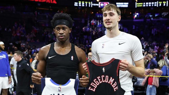 库珀·弗拉格和埃奇科姆并没有被詹姆斯·库里和杜兰特的退役吓倒,他们交换了球衣,以凸显未来 NBA 球星的力量。周六晚上,76人队客场挑战小牛队。 VJ Edgecomb 和 Cooper Flagg 合计得到 50 分。周六晚上,达拉斯小牛队在客场挑战费城 76 人队,上演了去年 NBA 前五顺位新秀库珀·弗拉格 (Cooper Flagg) 和 VJ Edgecomb 之间的对决。两人的职业生涯都有着辉煌的开端。在周六晚上的比赛中,弗拉格为达拉斯队贡献了24分,埃奇科姆为费城队贡献了26分,最终以微弱优势赢得了比赛。赛后,弗拉格和埃奇库姆交换了球衣,展现了联盟人才济济的未来。弗拉格毕业于杜克大学,高中时表现出色,后来转学到佛罗里达州蒙特沃德学院,并在选秀中以第一顺位被选中。与此同时,Edgecomb展现出不俗的爆发力去年他在贝勒大学一年级时。凭借出色的运动能力和柔和的外线投篮手感,他让对手的防守束手无策,最终在6月选秀大会上以第四顺位被76人队选中。弗拉格和埃奇科姆都是今年新秀阵容的一员,而夏洛特黄蜂队的新秀康·努珀(弗拉格在杜克大学的前队友)在新秀赛季就展现出了近乎全明星的能力。他在三分线外表现出色,年仅 19 岁就展现出了老将的得分能力。总的来说,在勒布朗·詹姆斯、斯蒂芬·库里和凯文·杜兰特等传奇球星退役后,一些球迷对NBA的未来感到担忧。然而,如果以今年的新秀名单为依据的话,联盟的未来无疑是光明的。弗拉格和埃奇科姆接下来将在达拉斯小牛队与 76 人队的复赛中再次交锋,这场比赛将于元旦在达拉斯举行。